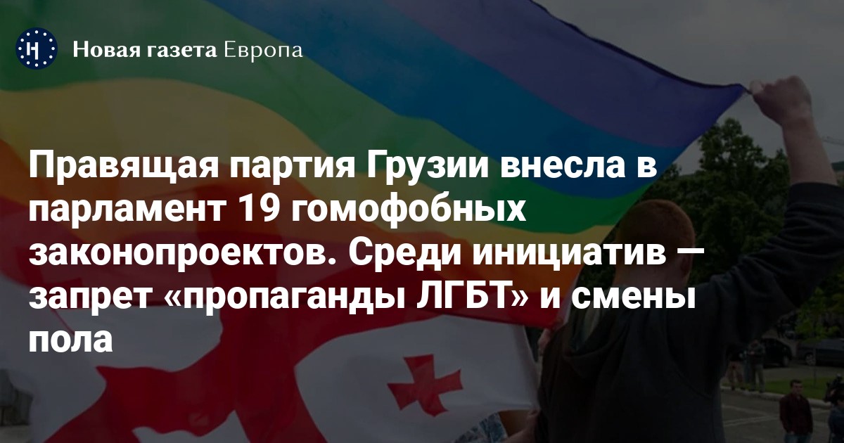 Правящая партия Грузии внесла в парламент 19 гомофобных законопроектов. Среди инициатив — запрет «пропаганды ЛГБТ» и смены пола