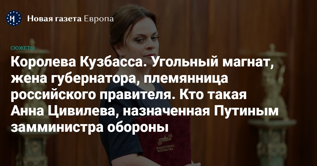 Но Кузбасса семье Цивилевых, долгие годы скрывавших свое родство с Владимиром Путиным, оказалось мало, и теперь они покоряют вершины федерального масштаба. С мая 2024 года Сергей Цивилев занимает должность министра энергетики в правительстве России, а его жена, сделавшая себе имя на благотворительных проектах в Кемеровской области, быстро забыла про детей и с 2023 года занимается проблемами ветеранов российско-украинской войны в рамках фонда «Защитники отечества», который, по мнению еврочиновников, «играет важную роль в агрессивной войне против Украины». В рамках военного ведомства деятельность Цивилевой, должно быть, приобретет совсем другие масштабы. Сама Цивилева не скрывает, что каждый день войны ломает судьбы многих людей, включая солдат, и работы у нее непочатый край: