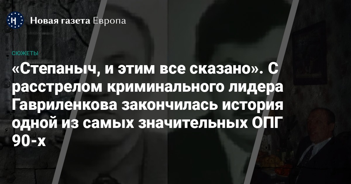 30 июня 1995 года в Петербурге из двух автоматов был расстрелян Николай Гавриленков, которого в криминальных кругах называли Степаныч. Это событие стало началом окончательного разгрома Великолукской ОПГ, в конце 80-х — начале 90-х занимавшей лидирующее положение среди бандитских группировок северо-западного региона России.