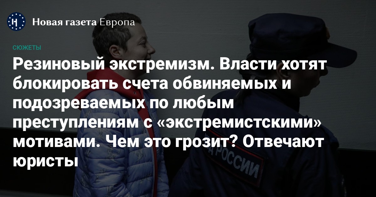 Власти хотят расширить число уголовных статей, по которым можно вносить людей в перечень причастных к экстремизму и терроризму и впоследствии блокировать им счета. Согласно поправкам, которые одобрила правительственная комиссия, в списке Росфинмониторинга может оказаться любой обвиняемый или подозреваемый, который имеет в деле квалифицирующий признак «экстремизма».
