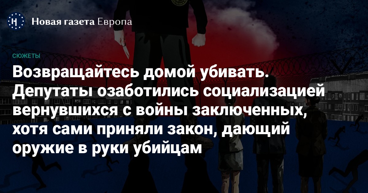Недавно «Медиазона» и Русская служба Би-би-си выяснили: за период с начала войны по август 2023 года погибли, судя по документам ЧВК «Вагнер», 20 тысяч вчерашних зеков. Всего структуры Евгения Пригожина, бесславно погибшего после смешного мятежа, успели завербовать, по данным журналистов, 48 тысяч заключенных. И это только «вагнеровцы», а по зонам ходили еще и рекрутеры от Минобороны. Вчерашних зеков пачками бросают в те самые «мясные штурмы», о которых много было сказано, но гибнут не все. Многие успевают вернуться домой вполне свободными людьми, и уже там, у себя дома, продолжают убивать.