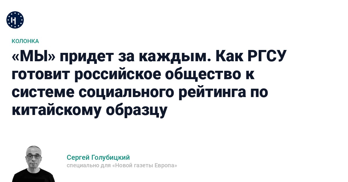 «Первое упоминание о платформе ”МЫ” появилось на сайте РГСУ в сентябре 2022 в совместном докладе первого проректора вуза Джомарта Алиева и декана факультета политических и социальных технологий Светланы Бородулиной». Дальнейшая эволюция инициативы хорошо отслеживается по статье «РГСУ тестирует систему социального рейтинга ”МЫ”», опубликованной на правильном портале «Ведомостей».