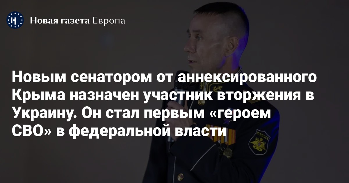 «Герой России Юрий Петрович Нимченко будет представлять исполнительный орган государственной власти Республики Крым в Совете Федерации РФ. Юрий Петрович — участник специальной военной операции, военнослужащий 126-й отдельной гвардейской бригады береговой обороны 22-го армейского корпуса береговых войск Черноморского флота, человек с правильной жизненной позицией и необходимыми качествами характера», — написал Аксенов.