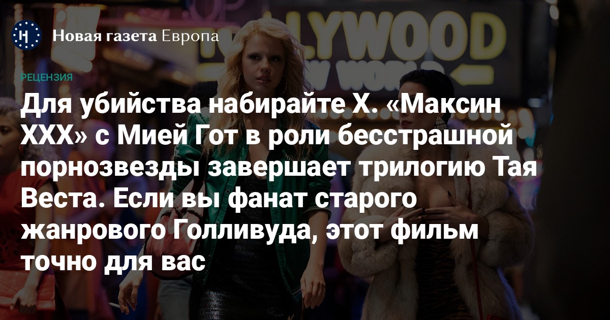 В мировой прокат вышел детективный триллер Тая Веста о молодой порнозвезде в Калифорнии середины 80-х, пытающейся пробиться в мир настоящего кино в Голливуде. 32-летнюю Максин Минкс играет актриса Миа Гот, сыгравшая у режиссера во всех фильмах трилогии: после ролей в предыдущих частях «Перл» и «Икс» Мию Гот стали называть новой «королевой крика». Спасшись после кровавой резни в техасском особняке, несколько лет спустя Максин все еще работает в порно и выступает в пип-шоу, но уже ходит по голливудским кастингам, надеясь поймать удачу за хвост и стать настоящей американской звездой. Кинокритик Катя Степная восхищается тем, как Тай Вест работает с историей сразу нескольких жанров — хоррора, слэшера, эротического триллера и детектива, — рассказывая при этом старую как мир сказку об американской мечте.