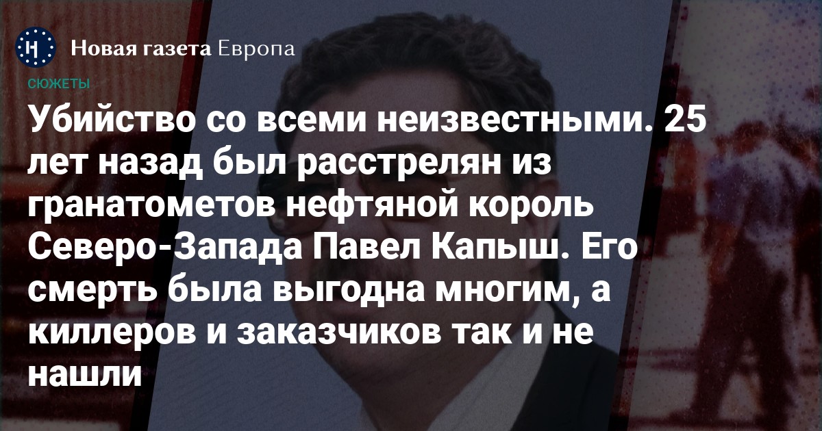 26 июля 1999 года в Петербурге был убит генеральный директор Балтийской финансово-промышленной группы (БФПГ) Павел Капыш. Это убийство, которое до сих пор так и не раскрыто, стало одним из самых знаковых в «бандитских войнах» 90-х. Именно после него «Тамбовское» преступное сообщество закрепилось в лидерах энергетического рынка Северо-Запада России. Устранение Капыша не позволило ворам в законе стать совладельцами нескольких перспективных нефтяных и газовых месторождений, а «Лукойлу» — войти на топливный рынок Петербурга. Косвенно это убийство повлияло даже на дело ЮКОСа. Версии о том, кто «заказал» Капыша, появляются до сих пор.