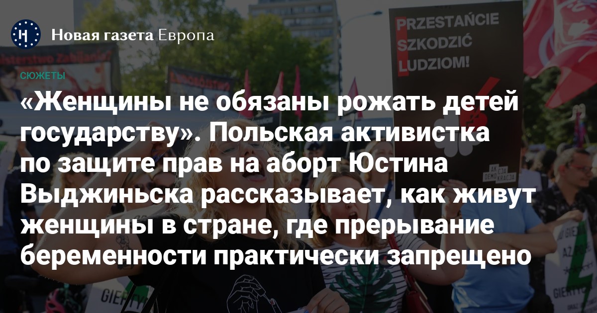 «Новая-Европа» выяснила, как живут женщины в Польше — стране, в которой аборты разрешены только по медицинским показаниям и в исключительных случаях. Мы поговорили с польской активисткой в области защиты прав на аборт и соосновательницей организации Aborcyjny Dream Team («Абортная команда мечты») Юстиной Выджиньской о том, как бороться за право на аборт, когда государство против.