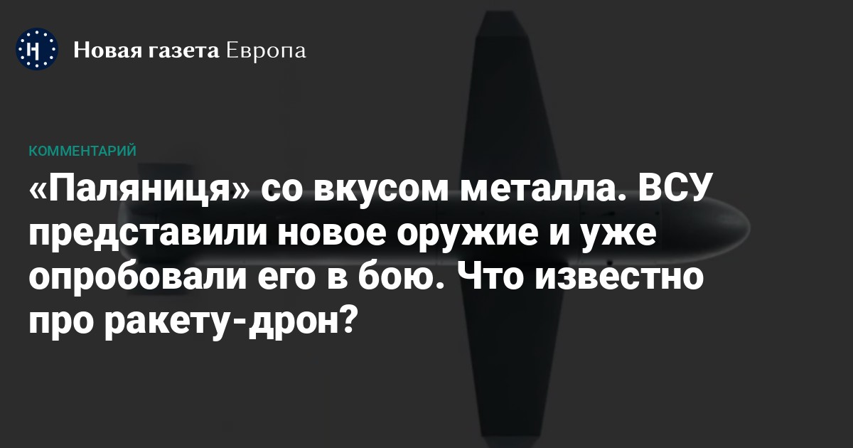Владимир Зеленский представил новую украинскую разработку — ракету-дрон под названием «Паляниця» (по-украински так называется белый хлеб определенной формы: круглый и с горизонтальным надрезом. Из-за особенностей украинской фонетики это слово — с мягкой «ц» — сложно произнести тем, кто не изучал украинский, так что «паляниця» стала своеобразным шибболетом: словом, позволяющим отличать своих от чужих. — Прим. ред.). По словам украинского президента, это оружие уже было использовано для удара по врагу.