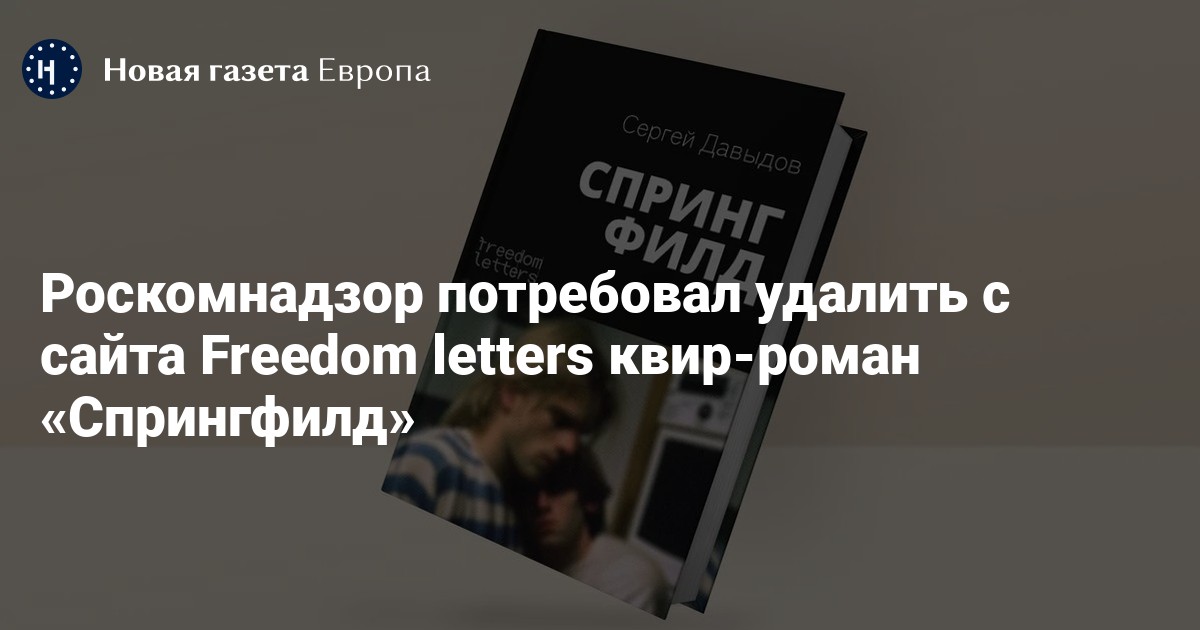 Роскомнадзор потребовал от издательства Freedom letters удалить с сайта квир-роман «Спрингфилд» Сергея Давыдова. Об этом «Новой-Европа» рассказали в издательстве.