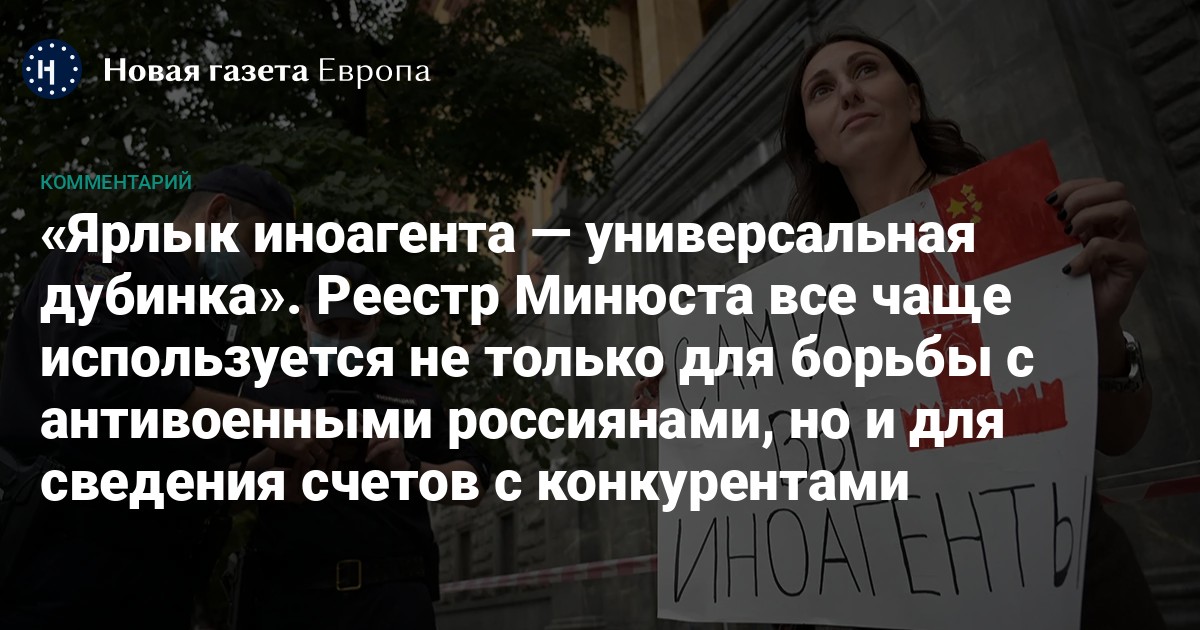 Что это за веяние, когда иноагентами признают и политически неугодных, и, наоборот, вроде как своих? Значит ли эта тенденция, что с помощью иноагентского ярлыка реестр Минюста теперь работает и как дополнительный инструмент сведения счетов с конкурентами?