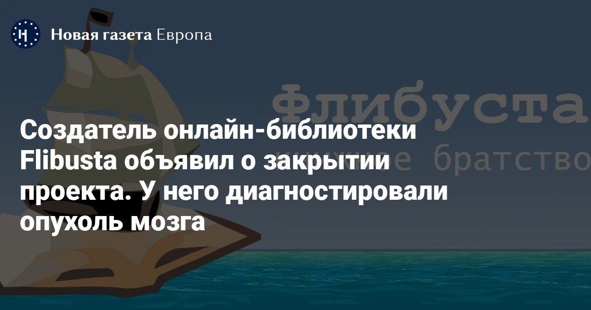 «Я в больнице с неприличных размеров глиобластомой. К сожалению, "Флибуста" на этом видимо закончилась, как и я сам. Всем спасибо, было весело. Серверы оплачены еще на несколько недель», — добавил автор проекта.