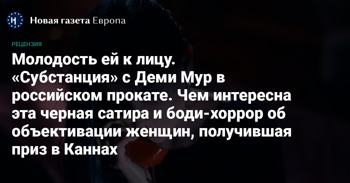 «Субстанция» — не самый глубокий, но точно один из самых отвязных фильмов последних лет, цитирующий историю кино и саркастично разоблачающий мир, одержимый «новым», «свежим», «молодым» и «сексуальным». Вместо гербалайфа — оземпик, вместо осуждаемых расстройств пищевого поведения (РПП) — новые диетические теории, вместо модельной размерной сетки — эксплуатация другого типа сексуальности. По мнению Фаржеа, спасение ждет лишь тех, кто смирится с существованием звезд на голливудском бульваре и с любопытством посмотрит на гипертрофированного монстра внутри себя. И, вздохнув с облегчением, всё равно наденет платье Золушки на главный бал, принимая самое дикое, странное и отвратительное в себе.