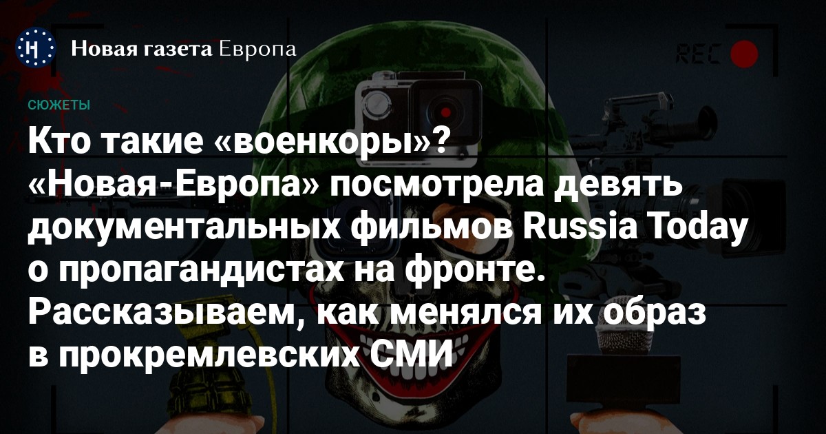 Военные корреспонденты — старая и уважаемая часть журналистской работы. В России они появились почти 140 лет назад. Но в ходе войны против Украины впервые в истории РФ (а возможно, и мира) «военкоры» в кавычках стали не просто освещать боевые действия, пусть и с пропагандистскими целями, — но и активно, зримо и гласно участвовать в них. Таков посыл пропагандистского телеканала Russia Today, который с конца 2022 года посвятил «военкорам» серию из девяти документальных фильмов.