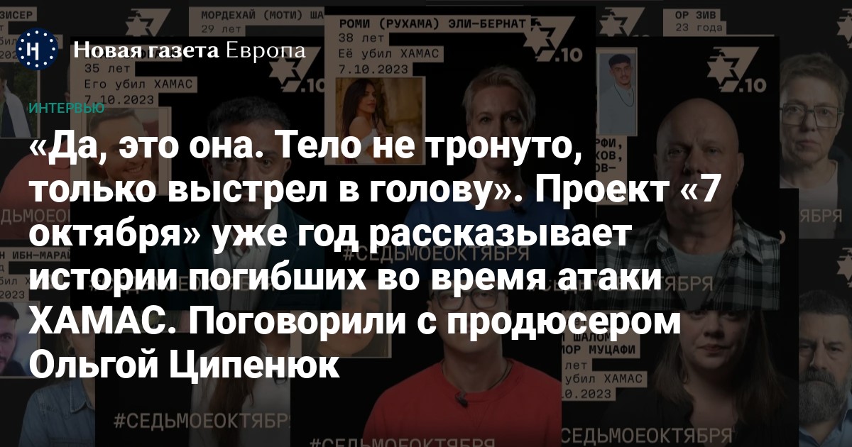 За год проект «7 октября» рассказал более 900 историй погибших при теракте. И продолжает это делать. Одна из создателей и креативный продюсер проекта Ольга Ципенюк — рассказывает о том, как нельзя молчать.