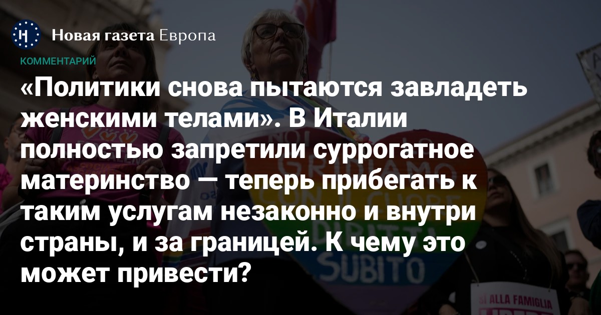 «Новая-Европа» рассказывает, как оправдывает запрет суррогатного материнства правящая консервативная коалиция в Италии и что про это думают противники закона.