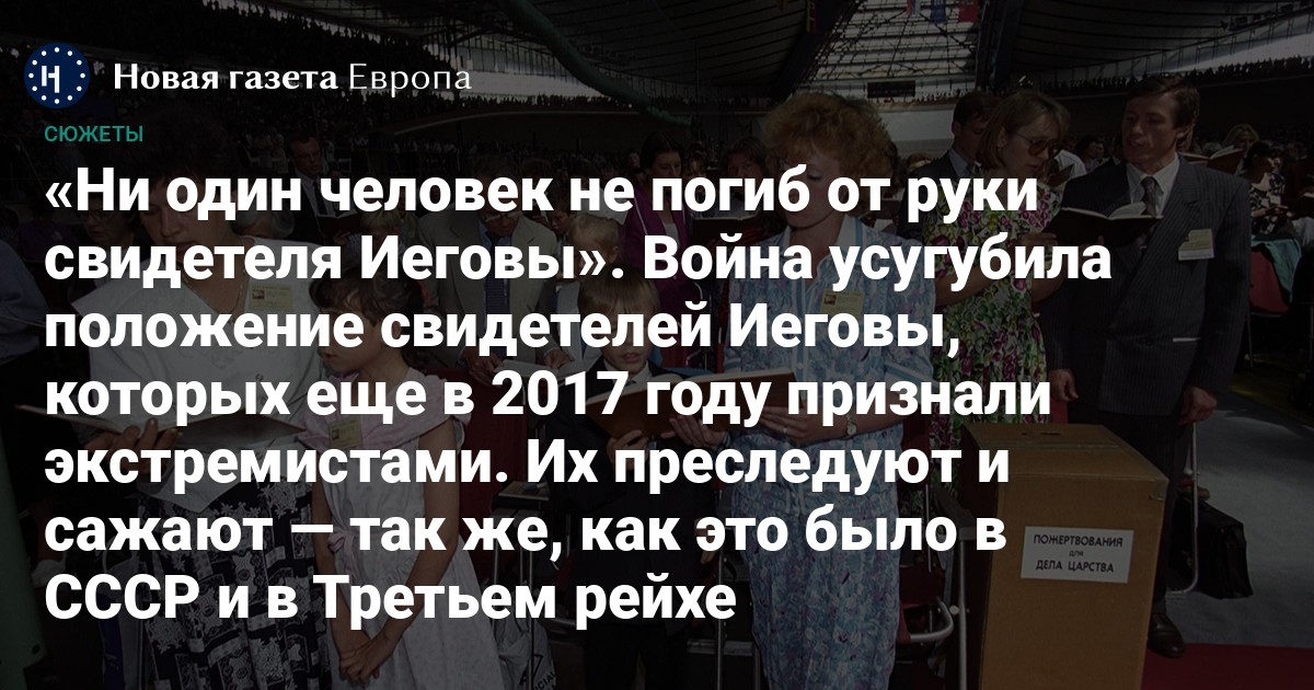В разные годы свидетелей Иеговы преследовали за аполитичность и антивоенные убеждения. Нежелание верующих идти на военную службу особенно раздражало гитлеровский и сталинский режимы. Путинский не стал исключением. Официальное преследование «экстремистов» свидетелей Иеговы ведется уже семь лет, а точечные репрессии начались еще в двухтысячных. Во время войны с Украиной положение верующих еще больше усложнилось.