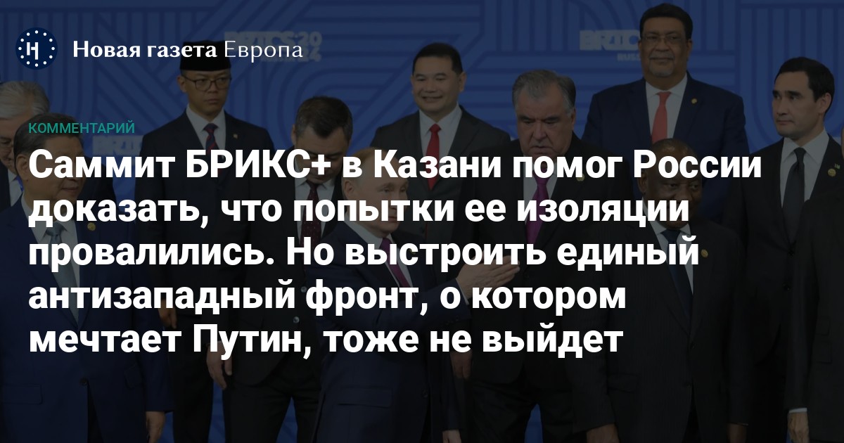 Чего добился Кремль проведением саммита БРИКС+ в Казани и какие непреодолимые трудности объединения скрываются за его успешным для Владимира Путина фасадом — разбиралась «Новая газета Европа».