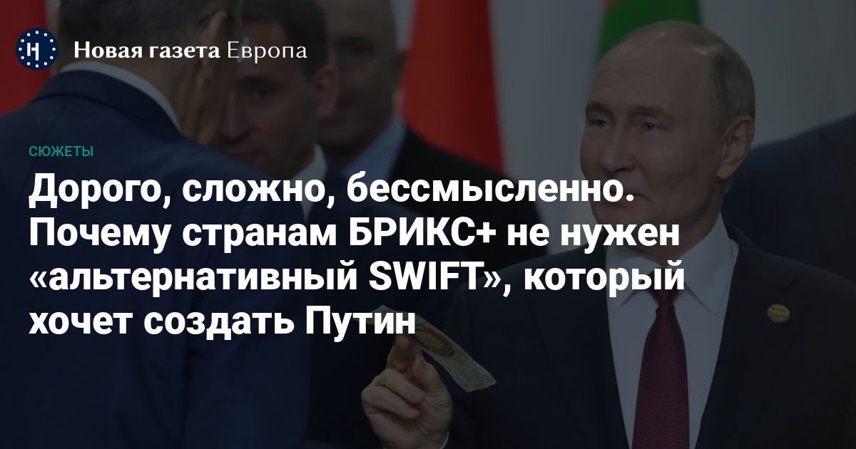 Это увеличивает расходы на создание новых платформ BRICS+. А если не получится сделать «альтернативные транзакции» как минимум не дороже, чем через SWIFT, Visa и Mastercard, «то тогда вся эта история обречена на провал», сказал нам экономист из России. Технологические проблемы решаемы, но требуют много времени.