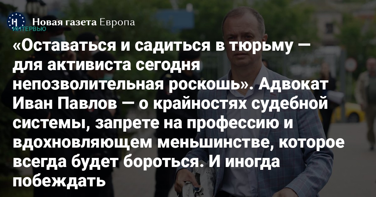 «Новая газета Европа» поговорила с Иваном Павловым о политзеках, силовиках, российском суде, запрете на профессию для адвокатов и журналистов, о прекрасной России будущего и собаке Изи, которая всегда с ним.