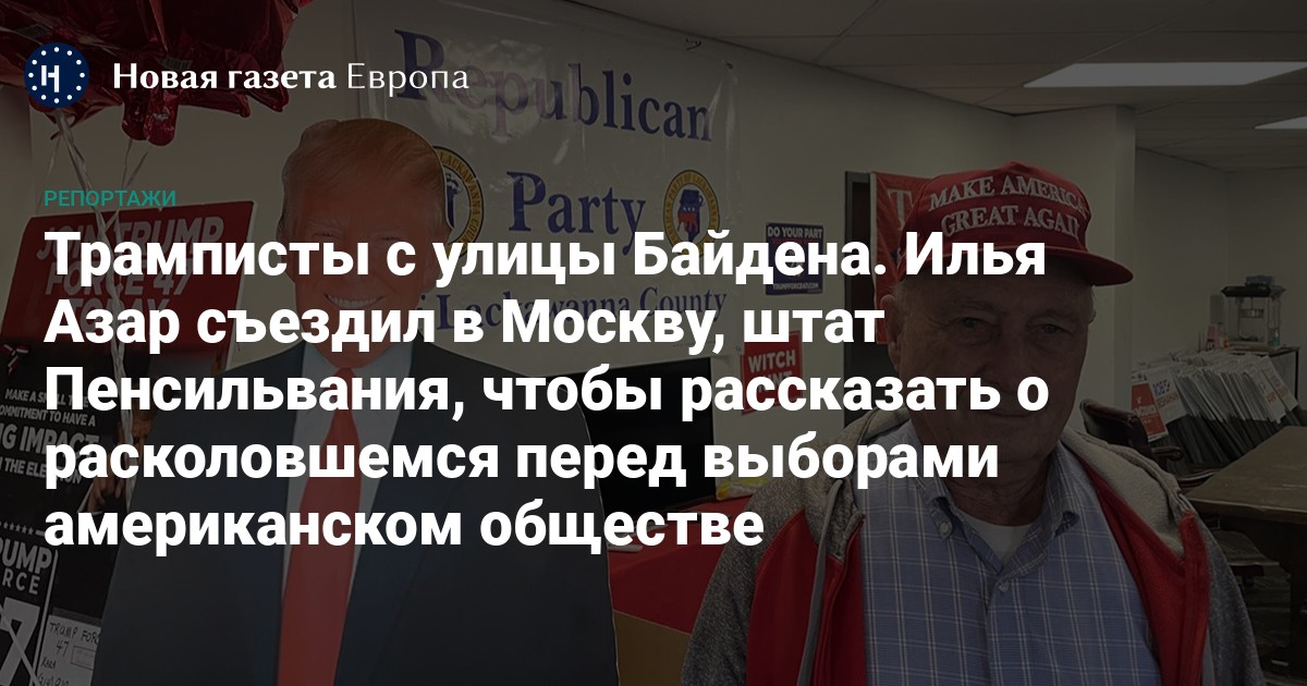 5 ноября в США состоятся выборы президента, на которых возвращению во власть республиканца Дональда Трампа пытается помешать вице-президент страны Камала Харрис от Демократической партии. Кандидаты подошли к дню голосования нос к носу, и победитель гонки наверняка определится в так называемых колеблющихся штатах, где трудно заранее предсказать результат. Специальный корреспондент «Новой газеты Европа» Илья Азар съездил в Пенсильванию, один из таких штатов, и в Вашингтон, чтобы разобраться, за что в глубинке любят Трампа и что могут этому противопоставить демократы.