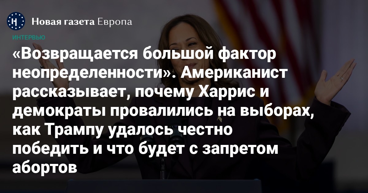 — Очевидно, что у демократов была в целом неудачная кампания. Камала Харрис — это кандидат, который не выигрывал праймериз и который подключился только на замене, причем в достаточно ответственный момент.