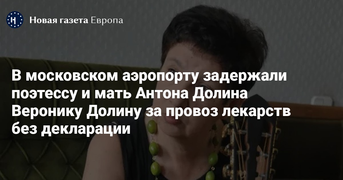 12 ноября в московском аэропорту Жуковский задержали мать кинокритика Антона Долина, поэтессу и барда Веронику Долину из-за провоза лекарств без декларации, утверждает связанный с силовиками телеграм-канал Shot.