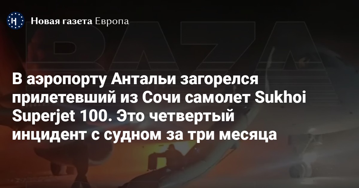 В аэропорту Антальи в Турции загорелся российский пассажирский самолет Sukhoi Superjet 100. Об этом сообщили турецкие СМИ, позднее информацию подтвердили в Росавиации.