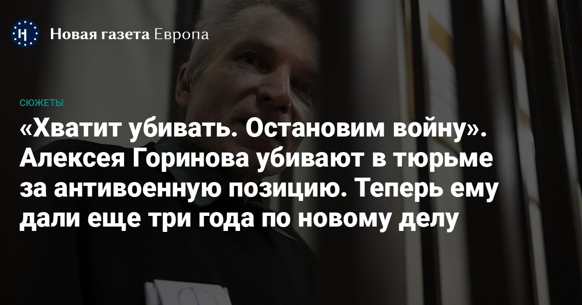 «Разозлится на меня политзаключенный Горинов за этот пост. Но он сам, как человек стойкий, этого не напишет, а я чувствую долю своей вины в ситуации. Куча моих постов с шуточками про ШИЗО, где я обитаю постоянно, как бы нормализовали ситуацию, сделали помещение политзаключенного туда обыденностью. <…> Но не замечать этого нельзя. Горинову 62. У него нет части легкого. Он инвалид. Ему вообще нельзя быть в ШИЗО по состоянию здоровья. И я не понимаю, как тюремный медик согласовал посадку инвалида в карцер. <…> Они же уже даже не пытают его, а просто хотят убить. Как это еще назвать? Какая вообще может быть цель тишайшего интеллектуальнейшего Горинова держать в ШИЗО. Дело Горинова — одно из самых беспредельных. Я много раз тестировал. Любой путинист и даже горячий сторонник в… приходит в ужас, когда ему рассказываешь: 62-летний депутат на собрании сказал “а может, не будем проводить районный праздник, ведь идет война?” И за это его посадили на семь лет. Мы не должны привыкать к садизму системы. Когда происходит подобное, надо проявлять нормальную человеческую солидарность, рассказывая, расшеривая и перепощивая такую информацию. Делая ее достоянием миллионов и постоянно напоминая этим миллионам о садизме тюремных упырей».