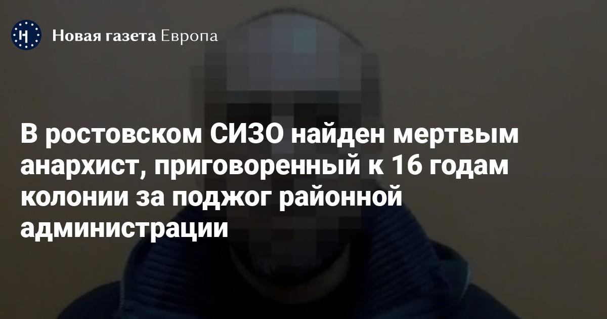 В СИЗО-1 Ростова-на-Дону найден мертвым анархист Роман Шведов, приговоренный к 16 годам колонии по делу о поджоге администрации одного из районов области. Об этом сообщили SHOT и «Медиазона».