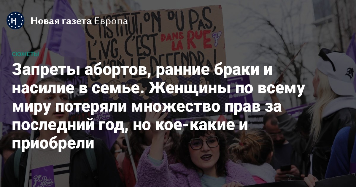 Возникает ощущение, что весь многолетний прогресс, достигнутый феминистками и активистами в области прав женщин, перечеркивается такими новостями. Так ли это? «Новая газета Европа» рассказывает, какие еще изменения произошли за последний год в правах женщин.
