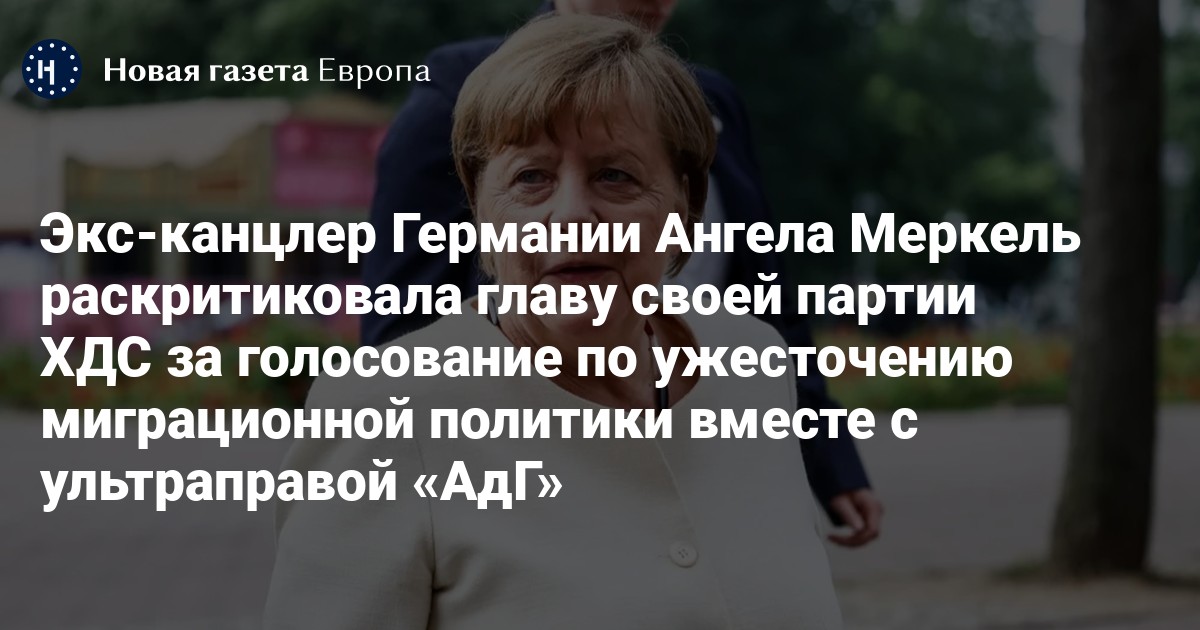 Экс-канцлер Германии, бывшая глава Христианского демократического союза (ХДС) Ангела Меркель раскритиковала действующего председателя партии Фридриха Мерца за вынесение на голосование в бундестаге законопроекта о радикальном ужесточении миграционного законодательства. Об этом пишет немецкое издание Stern.