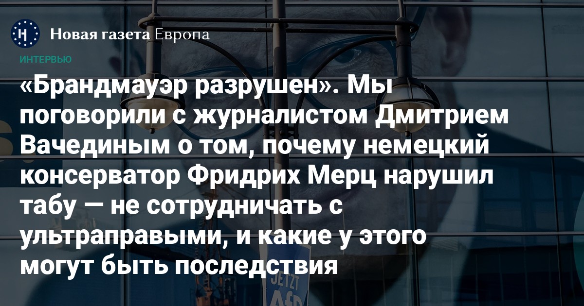 Это был «день в немецкой политике, который будут буквально по минутам разбирать в учебниках», — считает берлинский журналист и соведущий подкаста «Канцлер и Бергхайн» Дмитрий Вачедин. «Новая-Европа» поговорила с ним о том, почему авантюра Мерца закончилась провалом и как это скажется на февральских выборах.