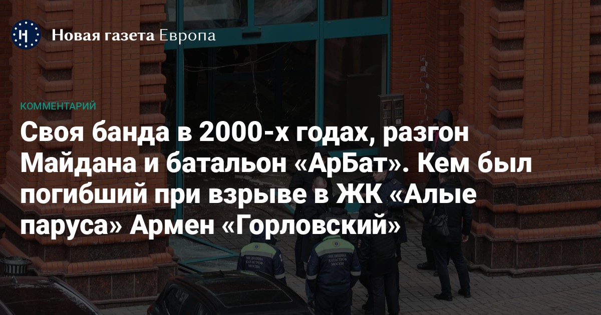 3 февраля 2025 года в элитном жилом комплексе «Алые паруса» на Авиационной улице в Москве произошел взрыв. По данным телеграм-каналов, целью атаки был Армен Саркисян, известный как «Горловский» — криминальный авторитет и основатель батальона «АрБат». При взрыве погиб его телохранитель, а сам Саркисян позже скончался в больнице. Среди пострадавших — бывший охранник Виктор Януковича Сергей Шкрябатовский.