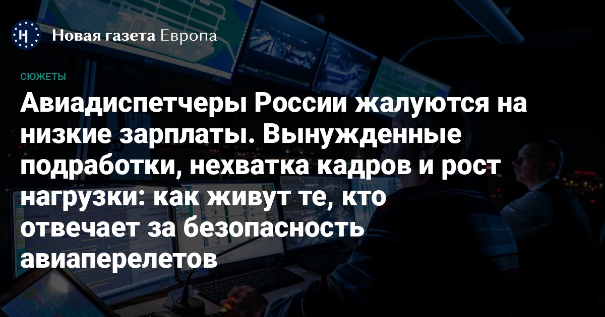 При этом зарплата оставшихся специалистов не повышается в достаточной мере. Средняя выплата в месяц составляет около 145 тысяч рублей. В то же время собеседник «Новой-Европа» в ФПАД подчеркивает, что эта цифра — «средняя температура по больнице». По его словам, есть подразделения, где начинающие авиадиспетчеры со стажем до шести лет получают 50–60 тысяч рублей в месяц, а диспетчеры со стажем 20 лет и более — 85 тысяч рублей. Такое, по его данным, происходит в Ставрополе, Элисте, Чебоксарах и других городах.