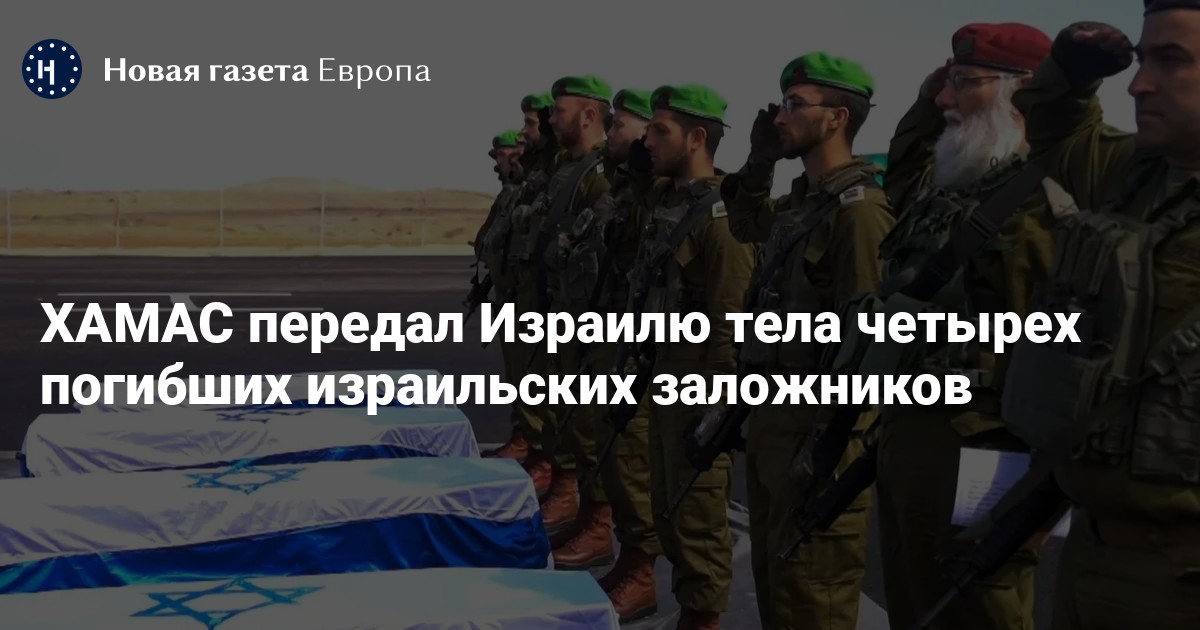 Группировка ХАМАС передала Красному Кресту тела четырех погибших израильских заложников. Об этом сообщил катарский телеканал Al Jazeera.