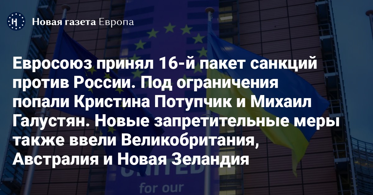 Евросоюз принял 16-й пакет санкций против России. Под ограничения попали Кристина Потупчик и Михаил Галустян