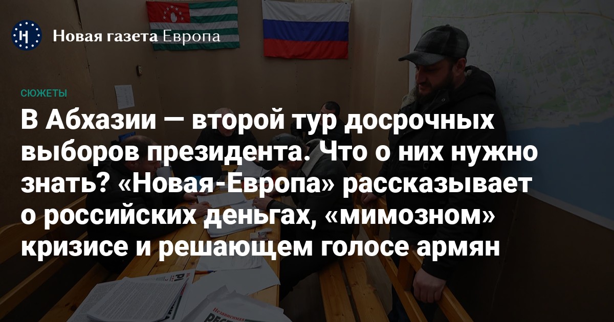 «Новая газета Европа» рассказывает, как Абхазия готовилась к финальной борьбе за власть, как на ситуацию влияет Россия и почему именно голос армян может стать решающим.