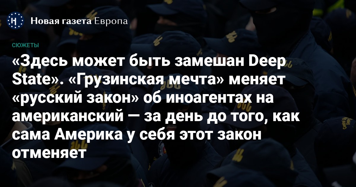 «Как ни странно, наше заявление [с инициативой внедрить в Грузии американский закон] совпало с ослаблением закона FARA в Соединенных Штатах. Здесь может быть замешан Deep State. Будущее это покажет. Закон о прозрачности призван помешать кому-либо в Грузии попытаться организовать очередную революцию с использованием финансирования НПО и иностранного финансирования», — сказал Кобахидзе.