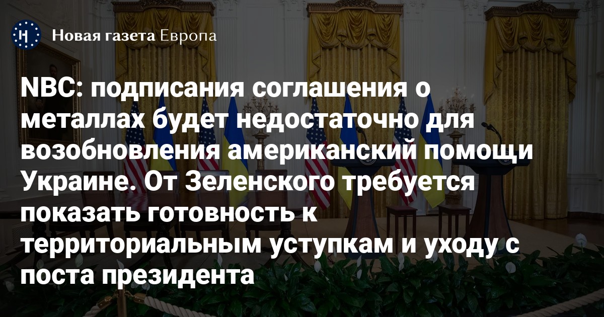 «Трамп хочет, чтобы сделка, которая даст США долю в минеральных ресурсах Украины, была подписана. Но он также хочет увидеть изменения в отношении президента Украины Владимира Зеленского к мирным переговорам», — пишет издание.