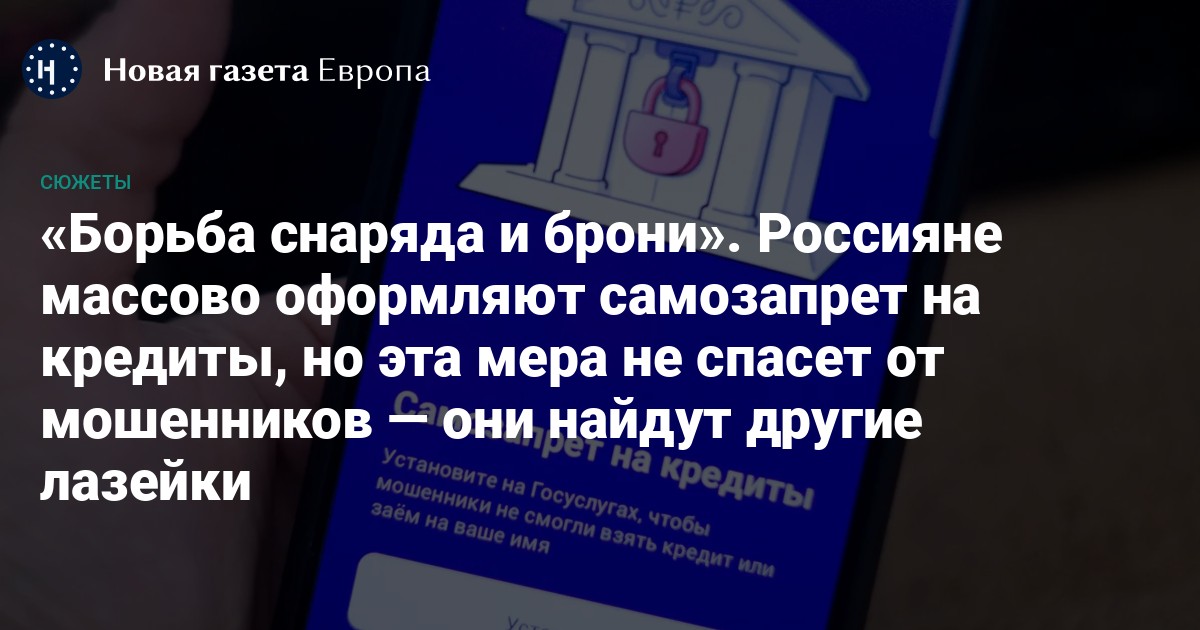 Россияне, уже оформившие самозапрет, рассказали «Новой-Европа», зачем они это сделали. Студент Владислав объяснил, что ему так «спокойнее, ведь мрази-мошенники не возьмут [на него] кредит или микрозайм, даже если получат все необходимые данные».