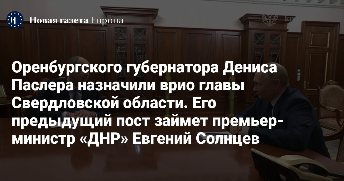 Владимир Путин подписал указ о назначении бывшего губернатора Оренбургской области Дениса Паслера временно исполняющим обязанности главы Свердловской области. Текст документа опубликован на сайте Кремля.