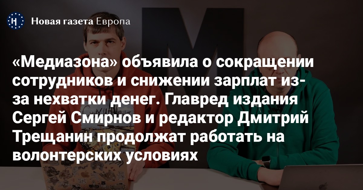 «Медиазона» была вынуждена сократить часть редакции и сильно урезать зарплаты из-за нехватки денег. Об этом сообщили главный редактор издания Сергей Смирнов и редактор Дмитрий Трещанин.