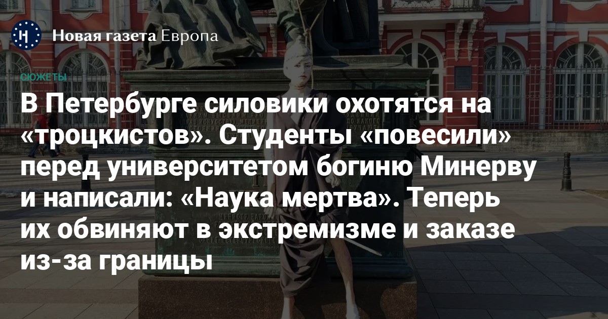 В марте у здания СПбГУ появилась подвешенная к памятнику Минервы кукла — студенты провели акцию «Наука мертва» в знак протеста против политики университета. Ответом стали задержания: один участник акции был оштрафован, другого арестовали.