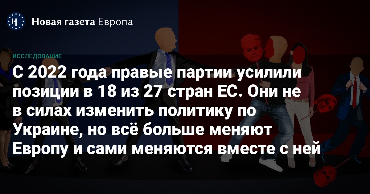 Сразу в трех странах ЕС — Италии, Венгрии и Бельгии — сформированы правительства под руководством правых консерваторов. Еще в четырех — Финляндии, Нидерландах, Словакии и Хорватии — они входят в правящие коалиции в качестве младших партнеров. В результате выборов 2024 года громче стал голос правых и в Европарламенте.