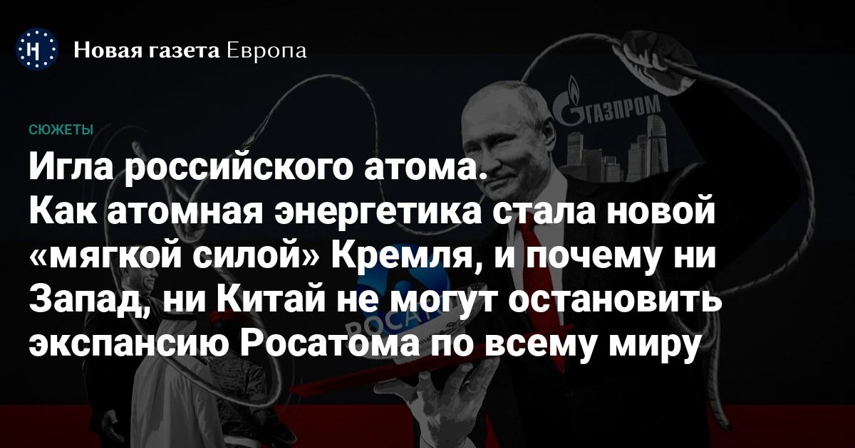 Если раньше Россия пыталась опутать всех соседей газопроводами, чтобы затем иметь возможность шантажировать их остановкой поставок топлива, то теперь Кремль вложил такую же тактику в руки Росатома. Россия проектирует и строит АЭС для десятков стран мира, а с 2022 года стала особо активно навязывать Глобальному Югу непропорционально большие стройки — и кредиты, которые он вряд ли сможет выплатить.