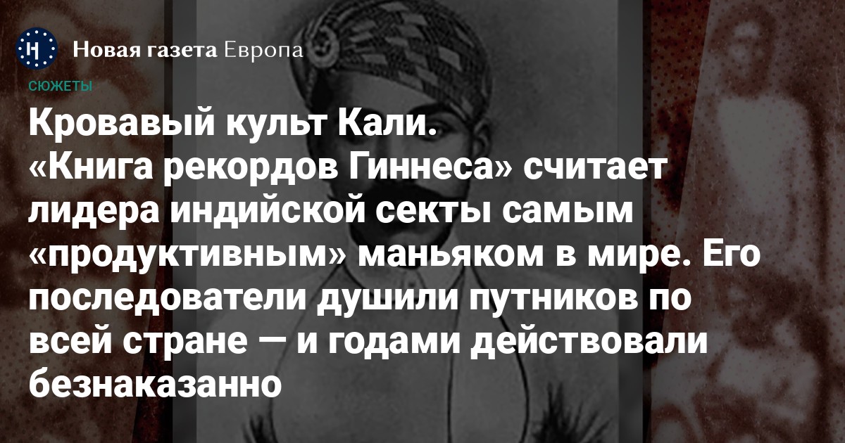 260 лет назад, весной 1765 года, родился один из самых кровавых серийных убийц за всю историю человечества — Таг Бехрам. За довольно долгую жизнь (75 лет) Бехрам лично убил как минимум 125 человек и участвовал еще в 931 убийстве. Последователи секты тугов, которую он возглавлял, считали его воплощением богини Кали на Земле. После его казни секта до сих пор продолжает существовать, а «общак» секты так и не был найден.
