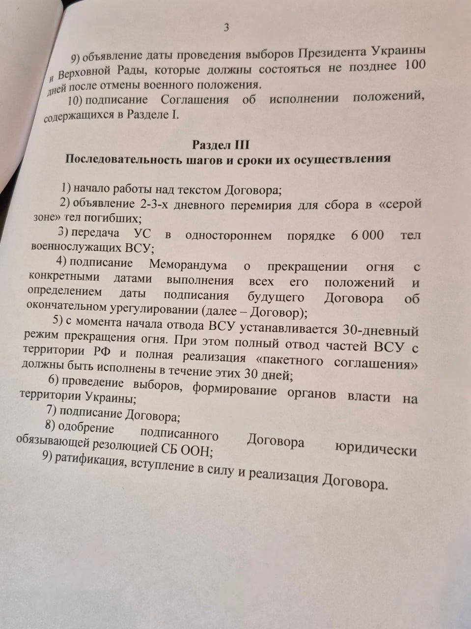Полный текст украинского меморандума еще вчера вечером опубликовало Reuters: по данным агентства, Киев разработал поэтапный план урегулирования, который предполагает полное прекращение огня сроком не менее чем на 30 дней, обмен всеми военнопленными, возвращение украинских детей, вывезенных Россией, а также личную встречу Владимира Зеленского и Владимира Путина.