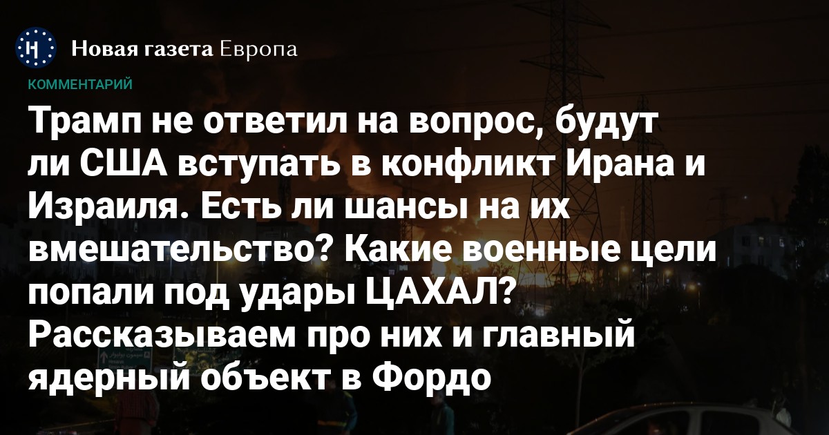 Главным вопросом на сегодняшний день остается участие США в войне на стороне Израиля. Об этом, а также о перспективах уничтожения главных ядерных объектов в ходе этой операции — в материале «Новой газеты Европа».