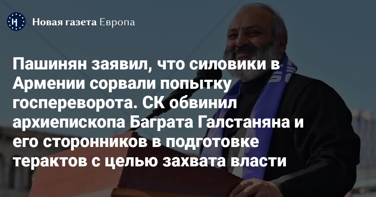 В пресс-релизе Следственного комитета Армении говорится, что участники оппозиционного движения «Священная борьба» и его лидер, архиепископ Баграт Галстанян, планировали осуществить теракты и захватить власть в республике.