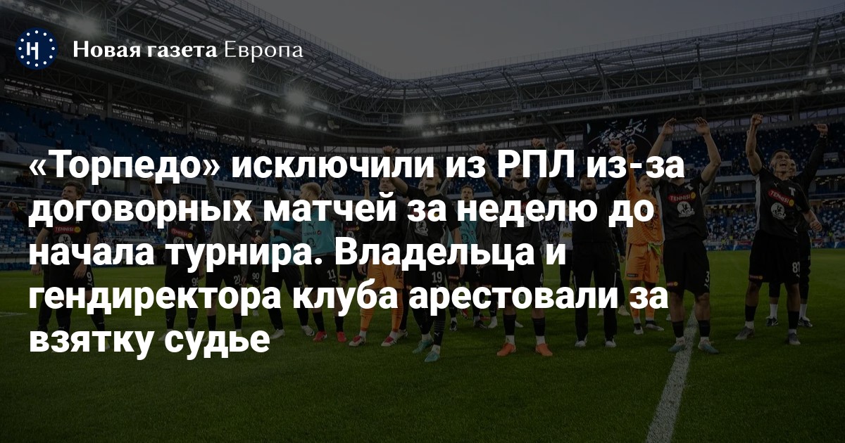 Контрольно-дисциплинарный комитет Российского футбольного союза (РФС) исключил московское «Торпедо» из числа участников Российской Премьер-лиги (РПЛ) за попытку организации договорных матчей и оштрафовал клуб на 5 млн рублей. Об этом сообщили в пресс-службе РФС.