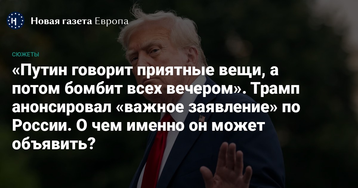 За последние недели Трамп, как утверждает Axios, еще более разочаровался во Владимире Путине из-за того, что тот не хочет идти на перемирие и активно атакует Киев и другие украинские города. «Новая-Европа» рассказывает, чего ожидать от сегодняшнего заявления Трампа, что о поставках США в Украину писали американские СМИ и как на это отреагировали в России.